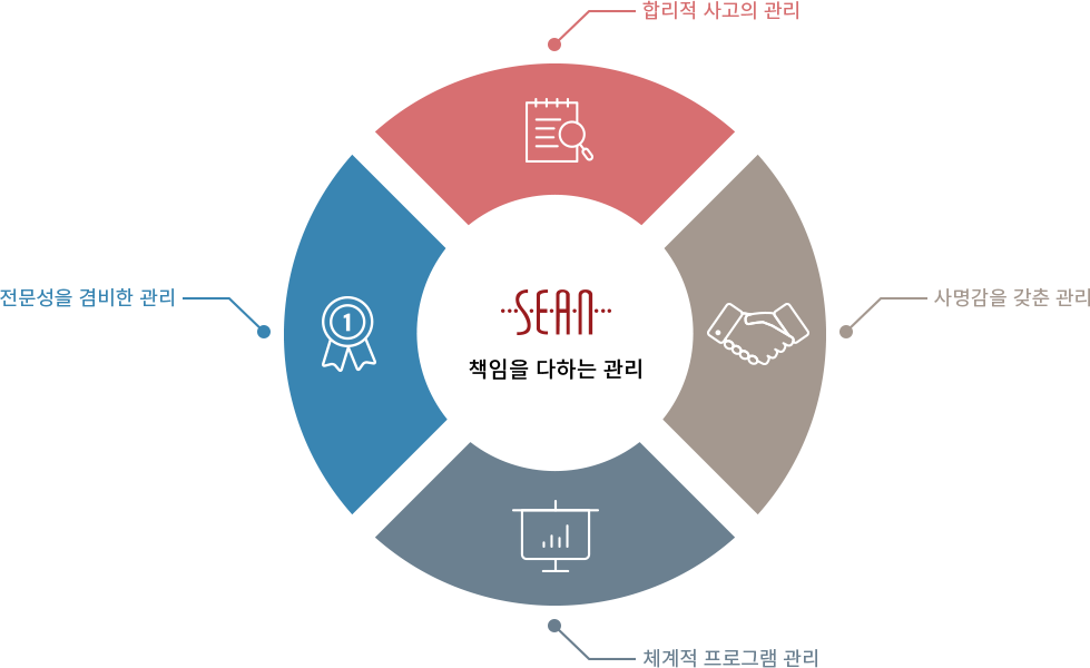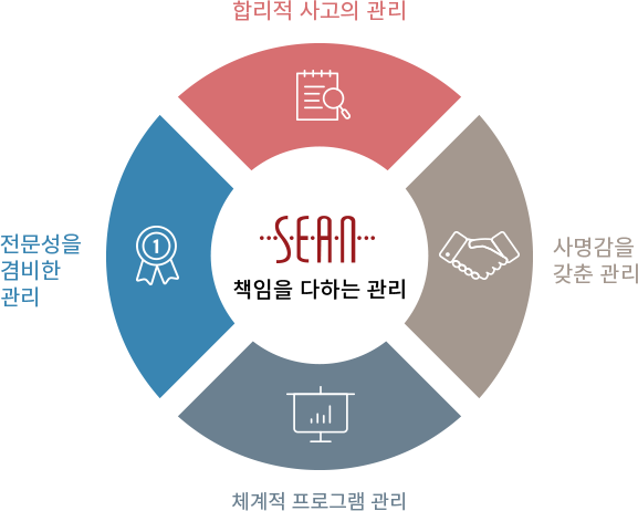 세안그룹(이하 (주)세안텍스, 세안에이앤에이(주))은 합리성과 인간미 및 경쟁력을 사훈으로 하여 합리적인 관리를 목표로 체계적인 건물관리 프로그램을 운영하고 있습니다. 전문성을 겸비한 전문가들이 책임을 다하는 건물관리를 제공하고 있으며 고객 여러분의 자산가치를 극대화 하기 위해 세안그룹은 오늘도 도전을 멈추지 않는 열정으로 고객님의 자산을 관리하고 있습니다.