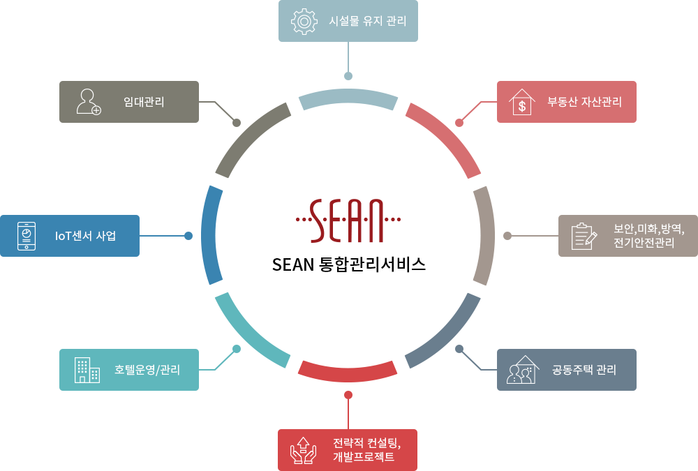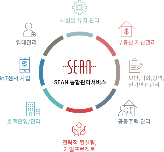 또한 세안그룹은 기업 부동산 시설,사무실,호텔,주상복합건물등 다양한 부동산자산을 관리함과 동시에 자산가치 향상을 위해 끊임없는 트랜드 분석 IoT 기술 사업 접목등 차별화된 서비스를 제공할 수 있도록 노력하고 있습니다.